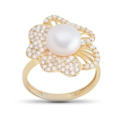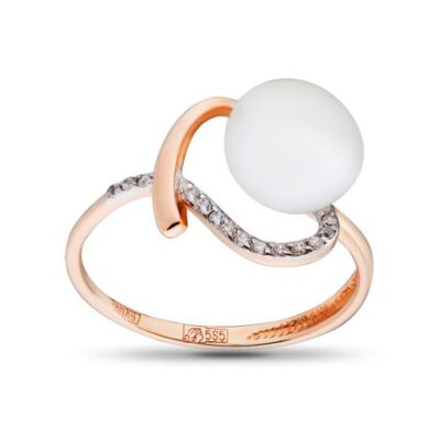 Кольцо из золота с жемчугом и фианитами 585*Золотой