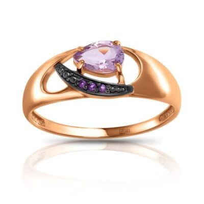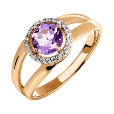 Золотое кольцо с аметистом и фианитами 585*Золотой