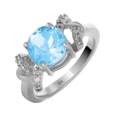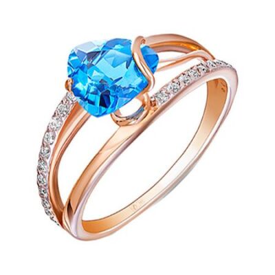 Золотое кольцо с London топазом и фианитами с родированием 585*Золотой