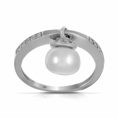 Кольцо из серебра с жемчугом и фианитами 585*Золотой