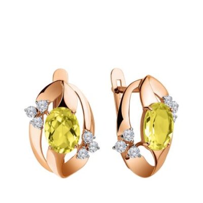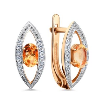 Золотые серьги с цитринами и фианитами 585*Золотой