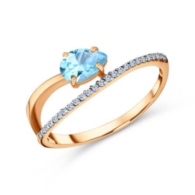 Золоте кольцо с топазом Sky и фианитами TALANT