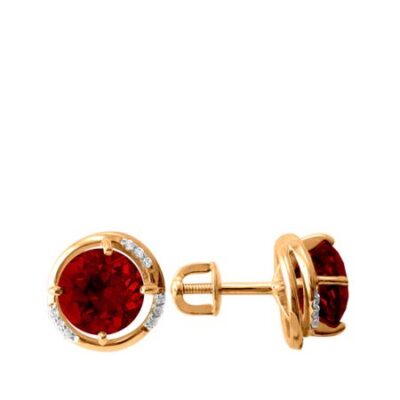 Золотые серьги с гранатом и фианитами 585*Золотой