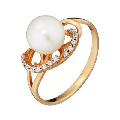 Кольцо из серебра с жемчугом и фианитами 585*Золотой