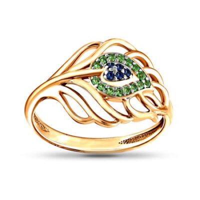 Кольцо из серебра с сапфирами и фианитами 585*Золотой