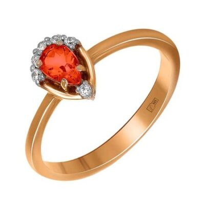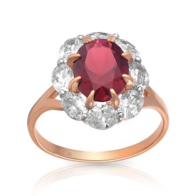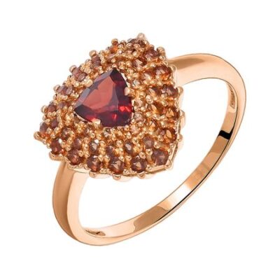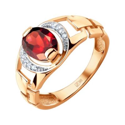Кольцо из золота с гранатом и фианитами 585*Золотой