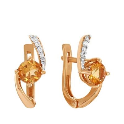 Золотые серьги с цитринами и фианитами TALANT