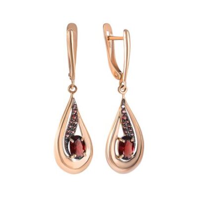 Серьги из золота с гранатом и фианитами 585*Золотой