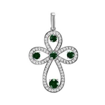Золотая подвеска с изумрудами и бриллиантами с родированием 585*Золотой