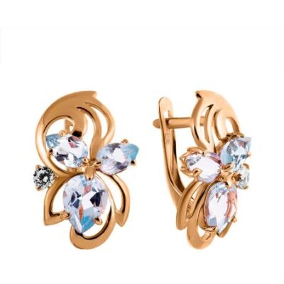 Серьги из золота с топазами Sky и фианитами 585*Золотой
