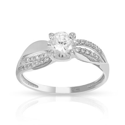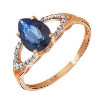 Золотое кольцо с London топазом и фианитами с родированием TALANT