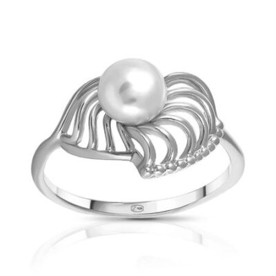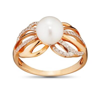 Кольцо из золота с жемчугом и фианитами 585*Золотой