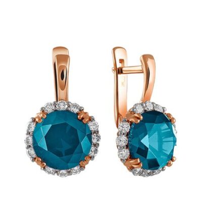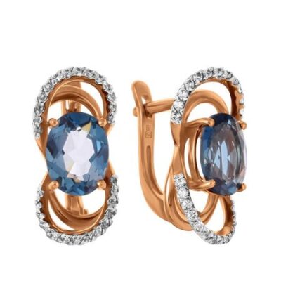 Золотые серьги с London топазами и фианитами с родированием 585*Золотой
