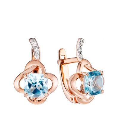 Золотые серьги с топазами и бриллиантами 585*Золотой