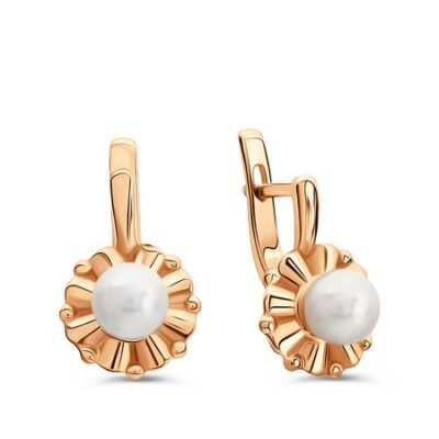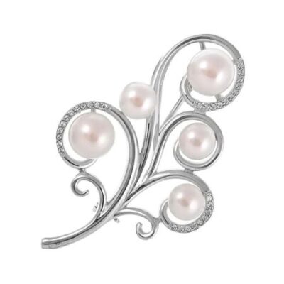 Брошь из серебра с жемчугом и фианитами 585*Золотой