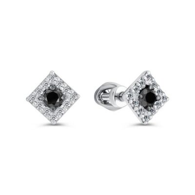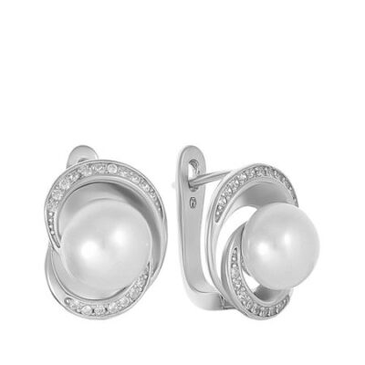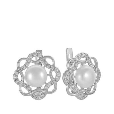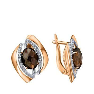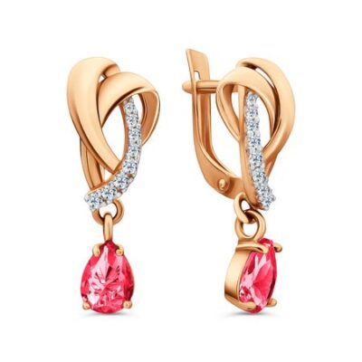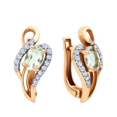 Золотые серьги с кристаллами и фианитами с родированием TALANT