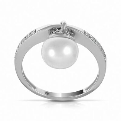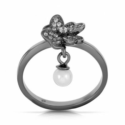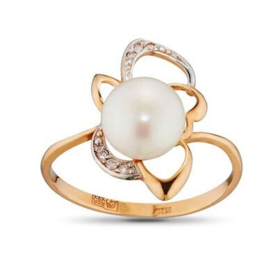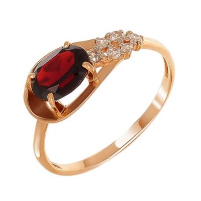 Золотое кольцо с гранатом и фианитами с родированием 585*Золотой