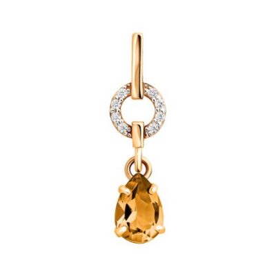 Золотая подвеска с цитрином и фианитами с родированием TALANT