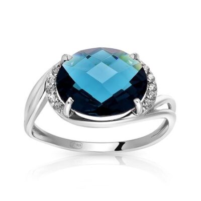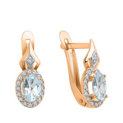 Золотые серьги с топазами Sky и фианитами с родированием 585*Золотой