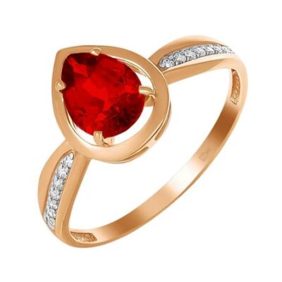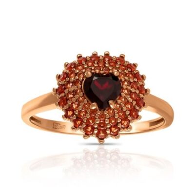 Золотое кольцо с гранатом и фианитами 585*Золотой