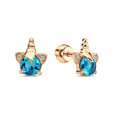 Серебряные серьги с топазами и фианитами 585*Золотой