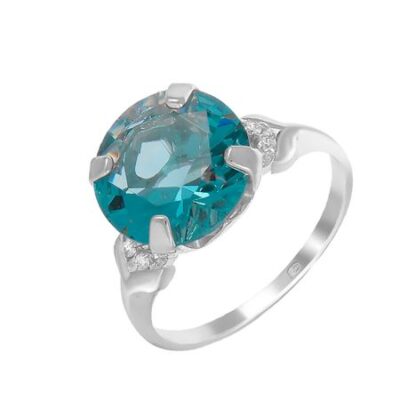 Золотое кольцо с London топазом и фианитами с родированием 585*Золотой