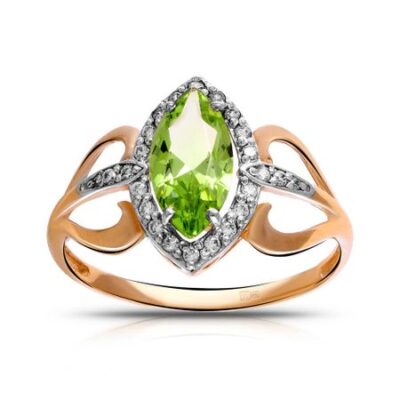 Кольцо из золота с хризолитом и фианитами 585*Золотой
