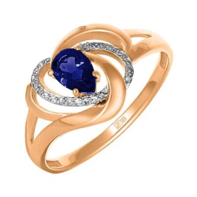 Кольцо из золота с сапфиром и бриллиантами 585*Золотой