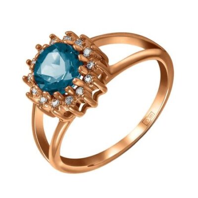 Золотое кольцо с топазом и фианитами с родированием 585*Золотой