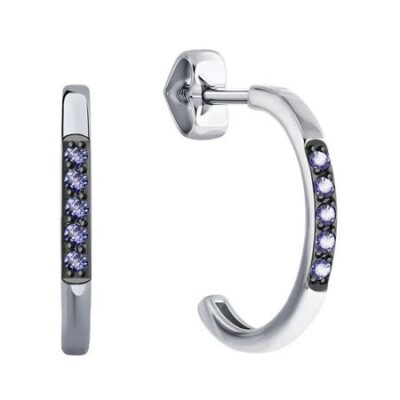 Золотые серьги с танзанитами и родированием SOKOLOV