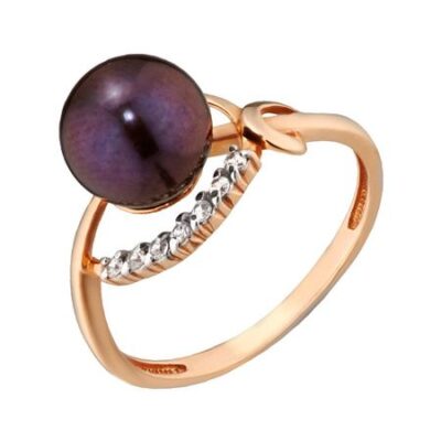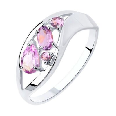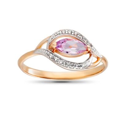 Золотое кольцо с аметистом и фианитами с родированием 585*Золотой