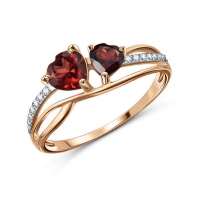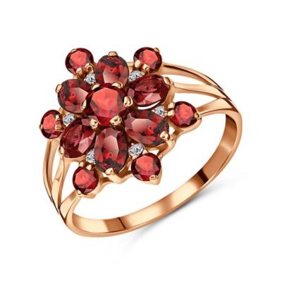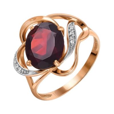 Золотое кольцо с гранатом и фианитами с родированием 585*Золотой