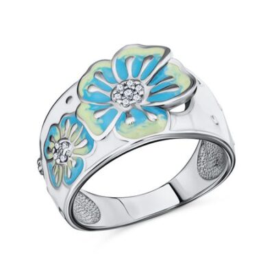 Серебряное кольцо с эмалью и фианитами с родированием SOKOLOV