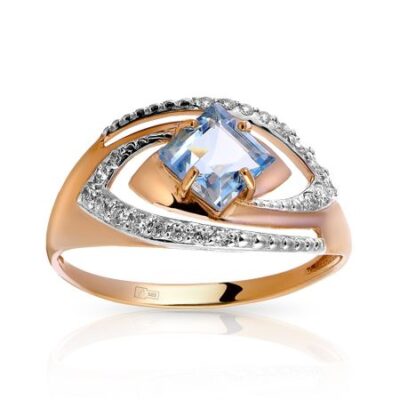 Золотые серьги с топазами Sky и фианитами с родированием TALANT