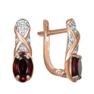 Золотые серьги с гранатом и фианитами с родированием 585*Золотой