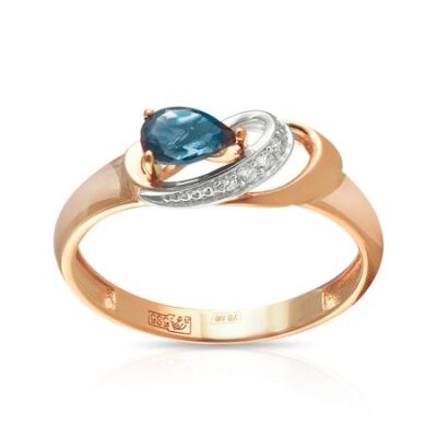 Кольцо из золота с топазом и фианитами 585*Золотой
