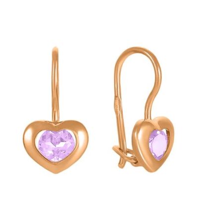 Серьги Сердце из золота с аметистами 585*Золотой