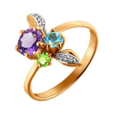 Золотое кольцо с топазом и аметистом с хризолитом и фианитами SOKOLOV