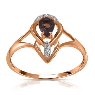 Кольцо из золота с раухтопазом и фианитами 585*Золотой