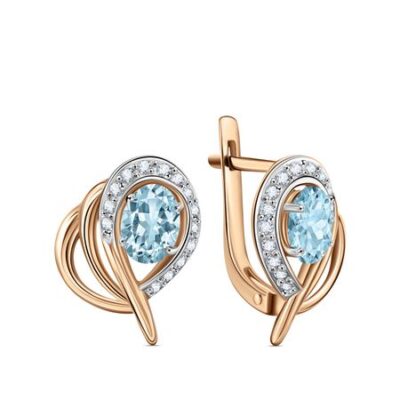 Золотые серьги с топазами и бриллиантами 585*Золотой