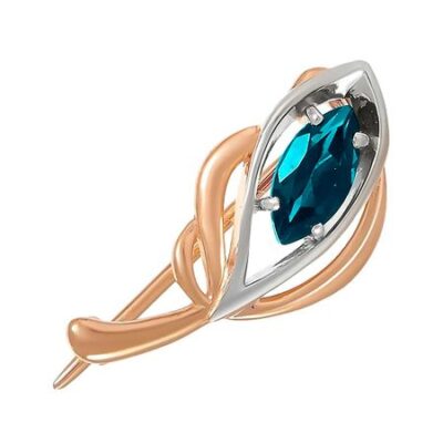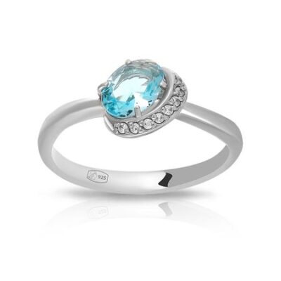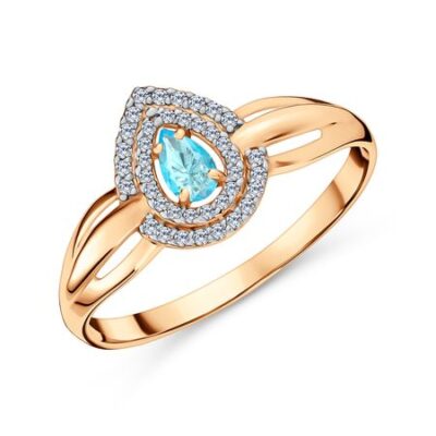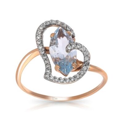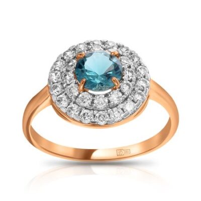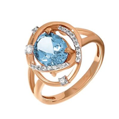 Золотое кольцо с London топазом и фианитами с родированием 585*Золотой