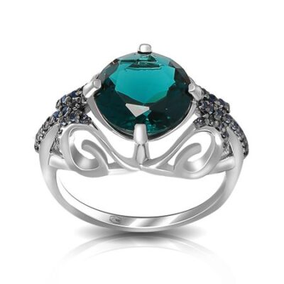 Серебряное кольцо с гранатом и шпинелью нано с фианитами и родированием TALANT