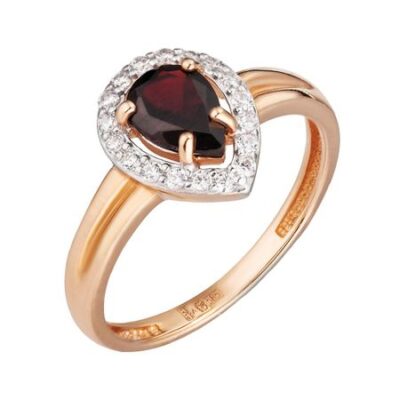 Кольцо из серебра с ювелирным кристаллом и фианитами 585*Золотой