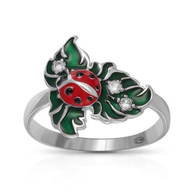 Кольцо из серебра с эмалью и фианитами 585*Золотой