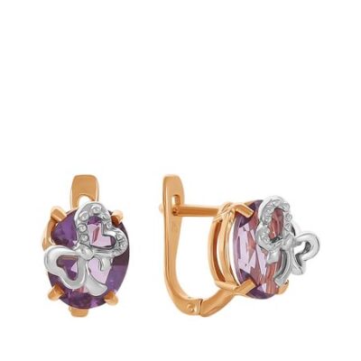 Золотое кольцо с аметистом и фианитами 585*Золотой
