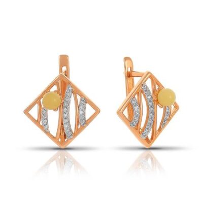 Серьги из золота с янтарем и фианитами 585*Золотой