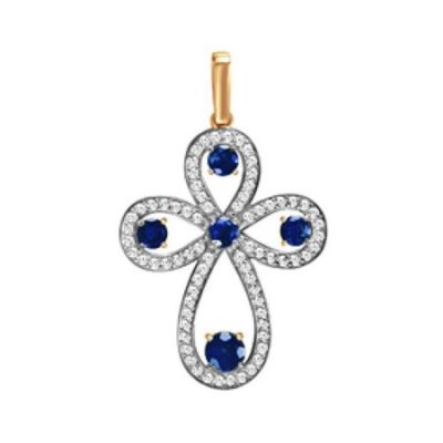 Золотая подвеска Крест с сапфирами и бриллиантами с родированием 585*Золотой