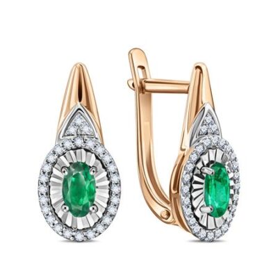 Золотые серьги с изумрудами и бриллиантами 585*Золотой