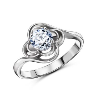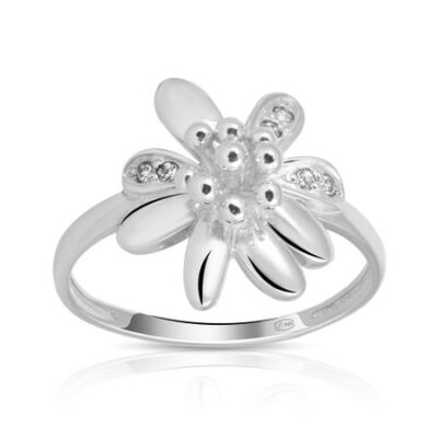Серебряное кольцо Цветок с фианитами 585*Золотой