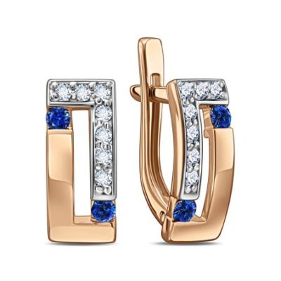 Золотые серьги с сапфирами и бриллиантами 585*Золотой
